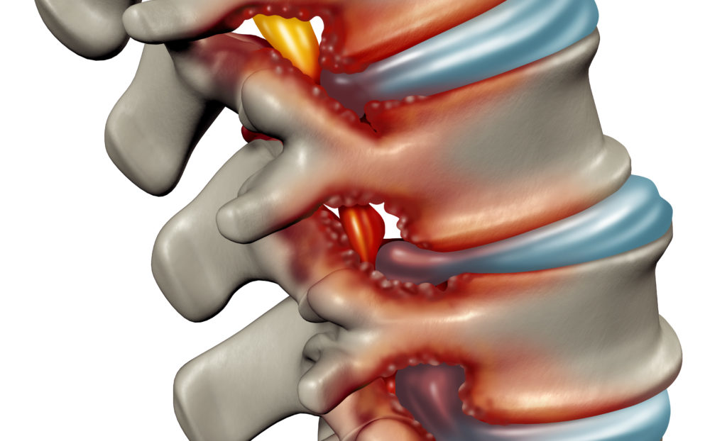 Spinal Stenosis may result in bulging discs, thickened spinal ligaments and enlarged joints. Vertebrae may slip out of alignment and rub against each other. This rubbing causes bone spurs to grow into the spinal canal and squeeze the spinal nerves. This causes irritation and inflammation.